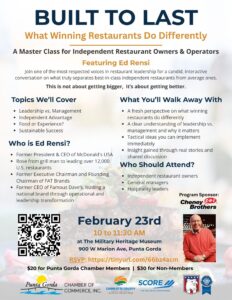 2/23/2026 10 – 11:30 AM Built to Last: What Winning Restaurants Do Differently – Ed Rensi