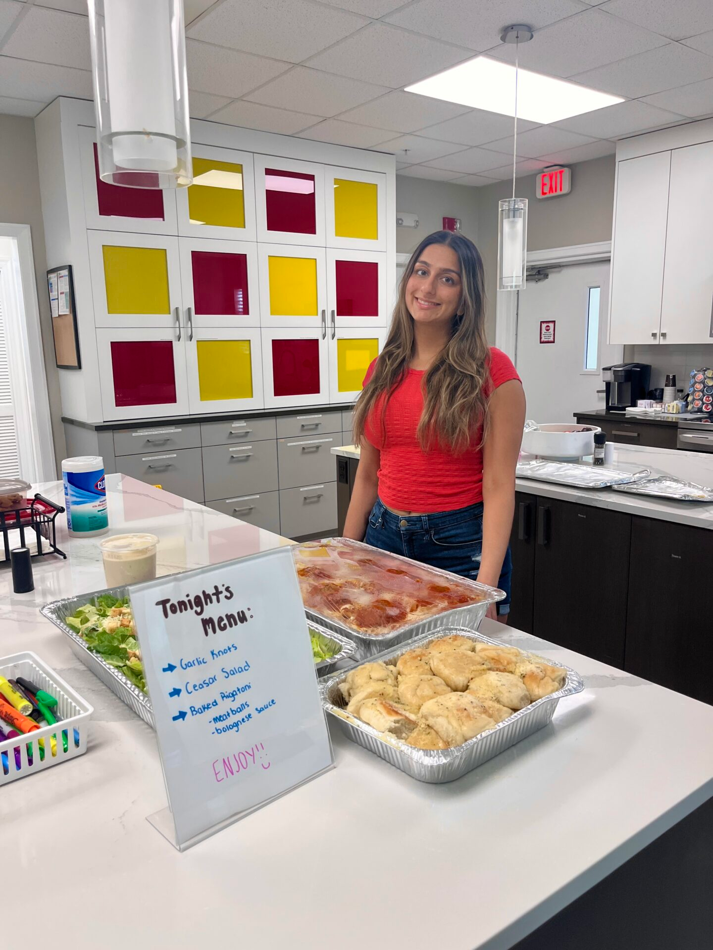 Her project, Meals with a Purpose, was born from empathy and organization. She reached out to the Ronald McDonald House herself, built a partnership with Two Meatballs in the Kitchen, and coordinated a full dinner service for families with children undergoing hospital care. From writing the menu by hand to personally delivering the food, she turned compassion into action.