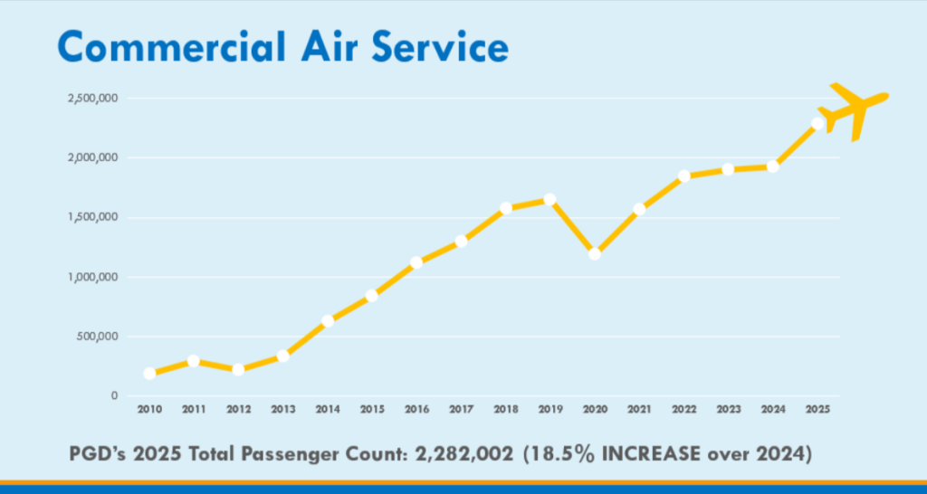 Passenger traffic data helps explain how people are actually using a region, not how it is being marketed or discussed. Airports sit at the intersection of travel, business, and daily movement. When passenger volumes change, they reflect shifts in how often people are coming and going, and how accessible a place is in practice. Punta Gorda Airport passenger traffic